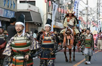 「与一まつり」は、源平屋島の戦いで扇の的を射落とした那須与一を称えるまつりです。大田原の夏を彩る代表的なイベントで、毎年8月の第1金曜日と土曜日の2日間、金燈籠交差をメイン会場に行われます。 昼の部は勇壮な武者姿の与一武者行列、子供みこし、各商店会コーナーなどイベントが盛り沢山。武者行列は、甲冑姿の那須与一公をはじめとする勇壮な武将、女官そして市内の小学生が扮した子供武者など約400人が通りを練り歩きます。